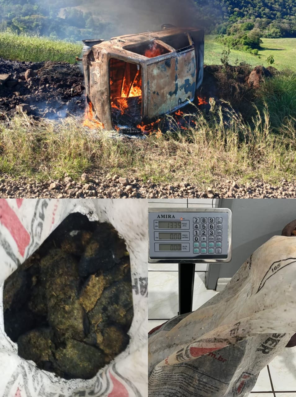 Alguns quilômetros depois, o motorista abandonou e incendiou o automóvel, que transportava grande quantidade de drogas. Apesar do incêndio, os policiais conseguiram recuperar cerca de 13 quilos de maconha, enquanto o restante foi consumido pelas chamas.