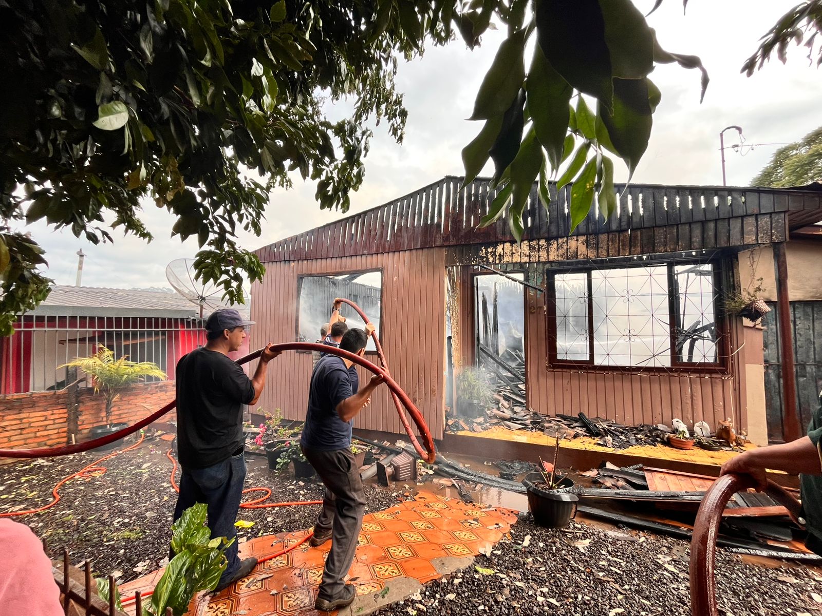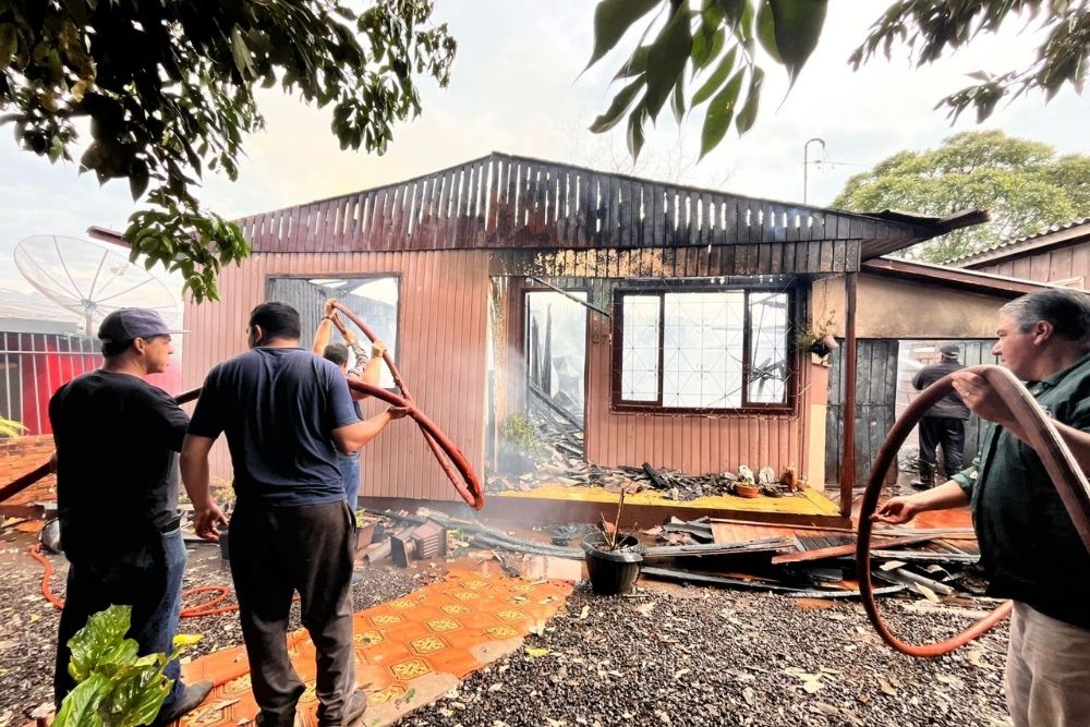Incêndio destrói residência de madeira no bairro Santa Fé, em Santo Augusto