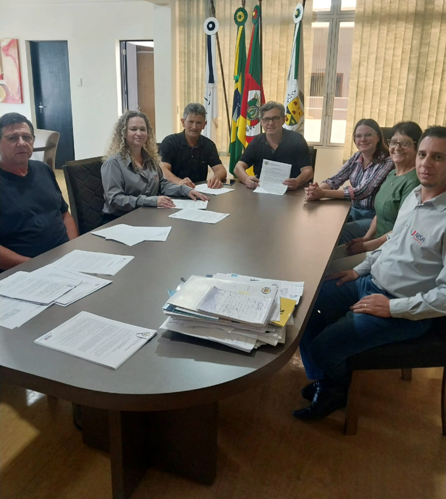 Assinatura do contrato para obras na Escola Municipal Padre Antonio Michels. Foto: Prefeitura São Martinho