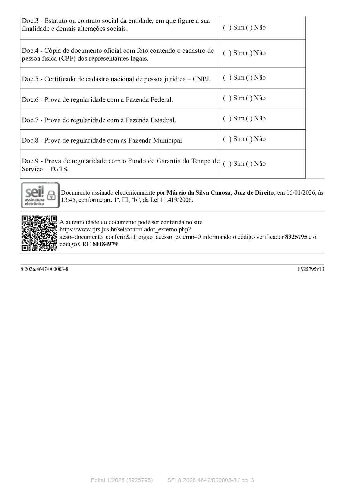 O edital está afixado no átrio do Foro e foi publicado no Diário da Justiça Eletrônico, também pode ser conferido abaixo.