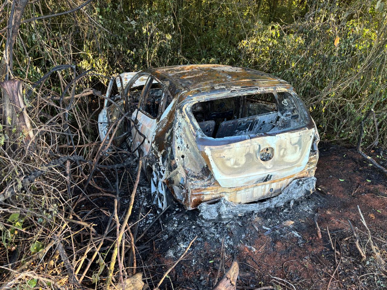 Um veículo Hyundai foi encontrado carbonizado em uma área de lavoura no município