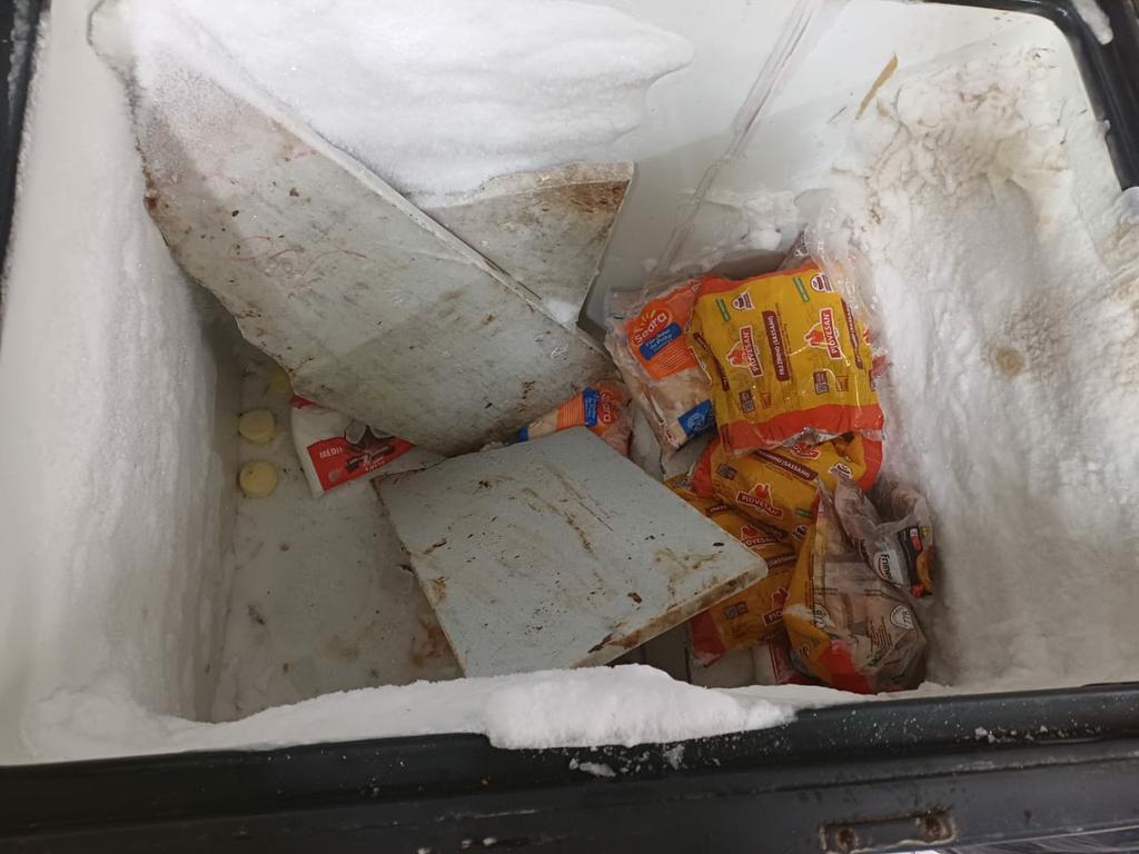 Produtos vencidos desde 2023 e mantidos em temperatura inadequada estavam sendo utilizados na preparação de bolos, tortas e doces, e os agentes encontraram péssimas condições de higiene, além de álcool de venda proibida em mercados.