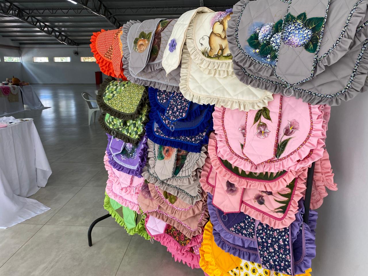 A APAE promove, no Salão Paroquial, sua tradicional Exposição de Artesanato Natalino, reunindo uma variedade de peças decorativas produzidas pelos alunos e voluntários da instituição. Entre os itens disponíveis estão jogos de tapetes, toalhas bordadas, panos de prato, capas de térmica e outras criações feitas com dedicação e espírito natalino.